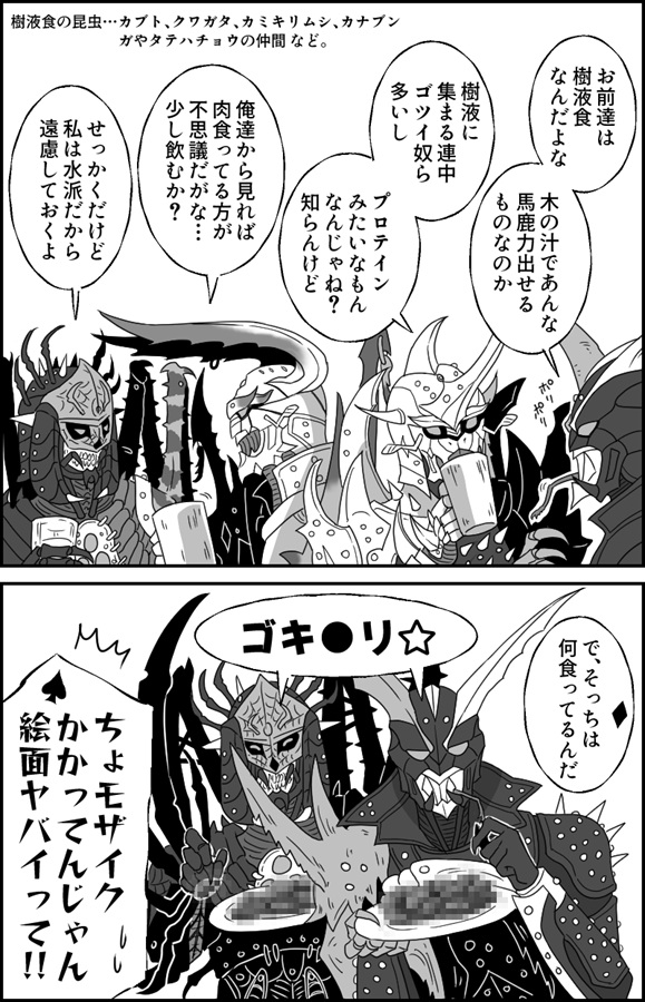 「樹液はプロテイン」発言は、某漫画家さんの言葉をお借りしました。