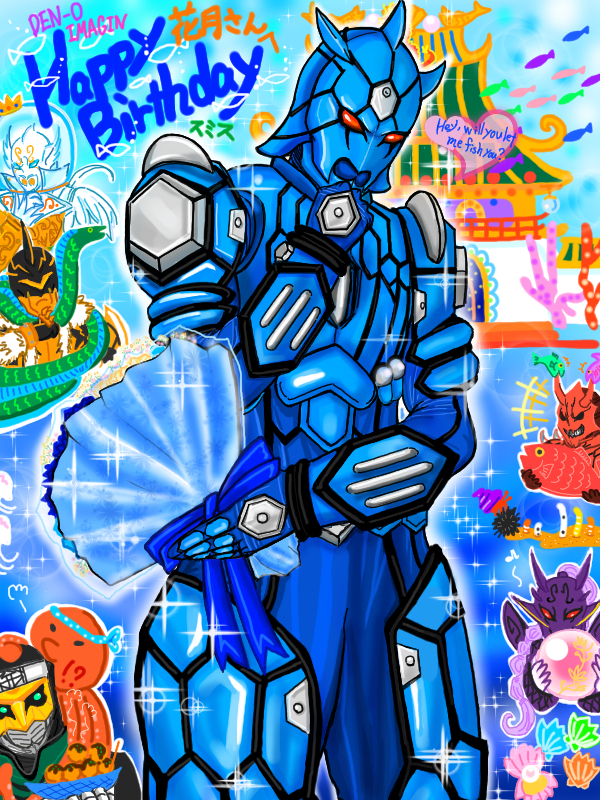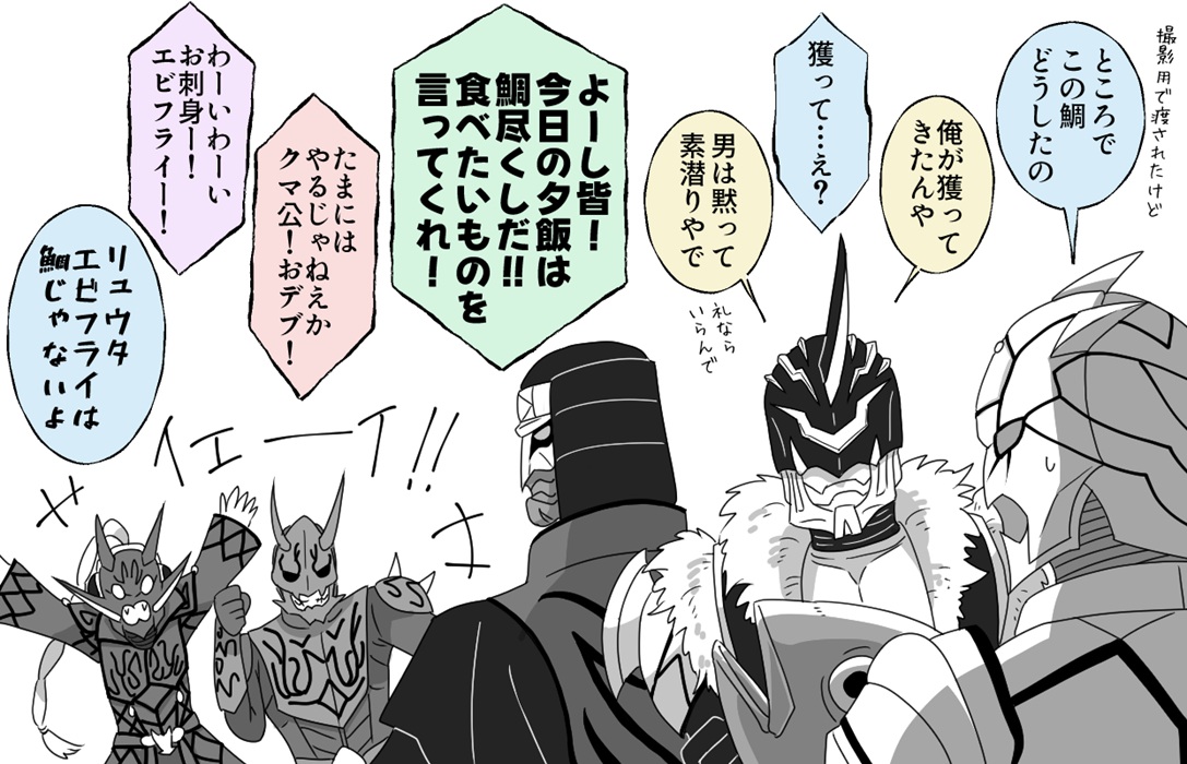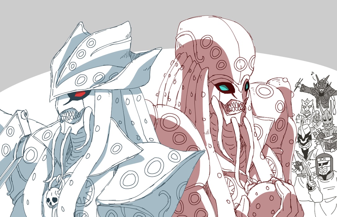 (黒一色ですが)それっぽいラインがあって、ちゃんと孔雀意識で上手く怪人のデザインに落とし込んであるんだなーと、今回孔雀の写真と見比べながら描いて思ったり。