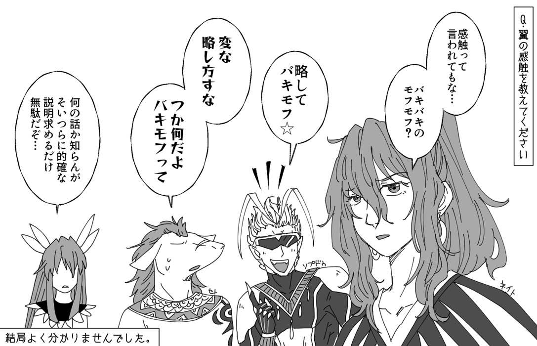 韮沢さんの画で「CGで光の羽毛が…」みたいな事が書いてありますが、劇中ではその描写はちょっと無かったかな……綺麗だと思うけどなぁ(いちおう飛ぶシーンはあります)