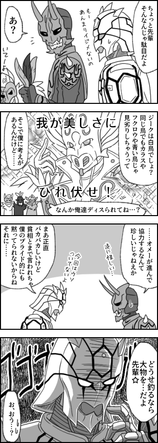 同じく韮沢さんが担当されてる電王のイマジンともまた雰囲気違っててカッコイイなと!