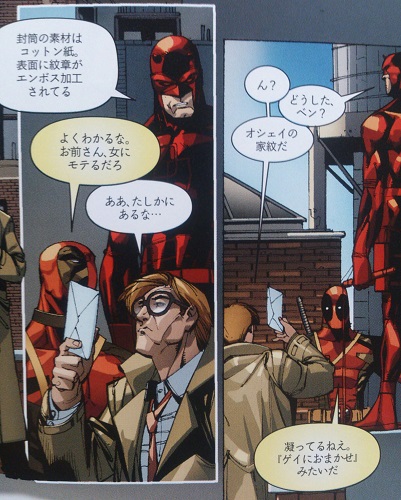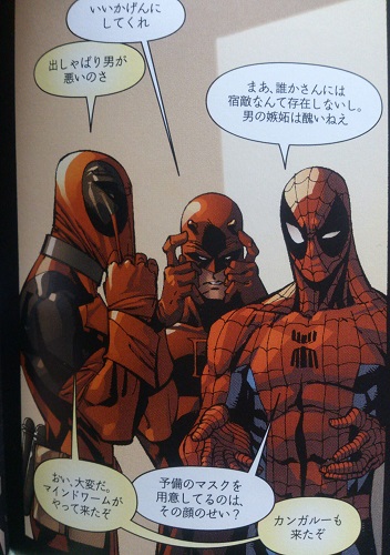 デップー&スパイディという、ニ大お喋りキャラのジョーク合戦について行けないデアデビルの図w