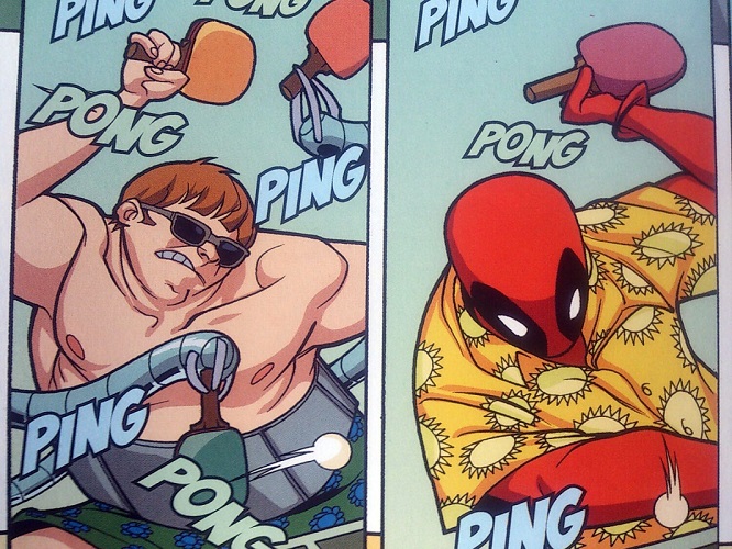 ディスウォにも登場したヴィラン、ドクターオクトパス(左の人です)と何故か卓球対決!!
