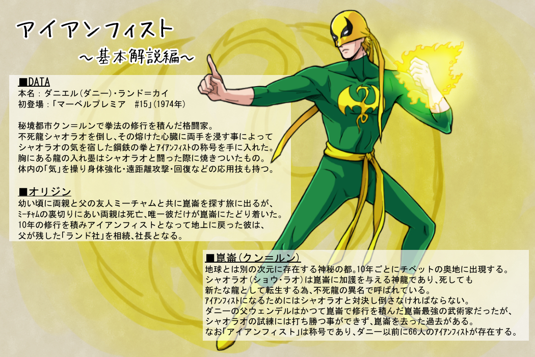 アイアンフィストは最近アニメなどに登場する機会もあって、名前や能力のことはある程度知ってたんですが、今回解説書くのに色々調べてて、思ったより過去が重いなと……。