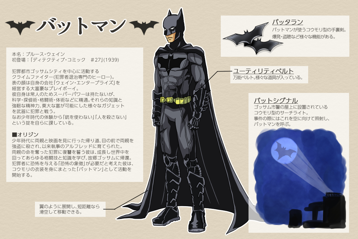 前回のスーパーマンもそうですが、とにかく歴史も長くて設定も複雑なキャラなので、とてもここに書ききれる量じゃなくて……とりあえず基本ポイントだけ(汗)