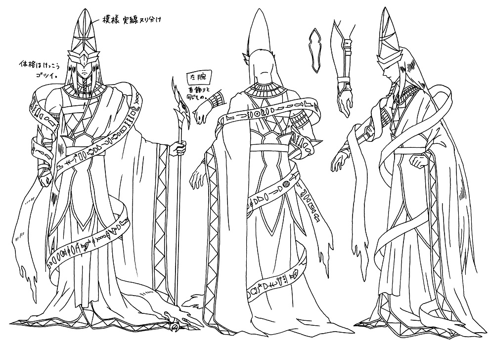 ソカリス、アトゥムの設定画とか。今回はちゃんと清書したやつです。