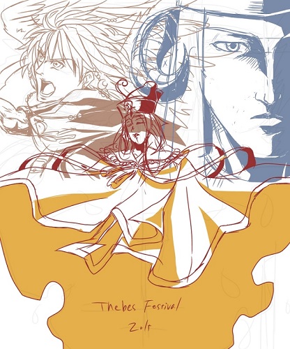 コンスの服にムトのマントの色(紫)乗せたり、髪にオレンジ混ぜてみたりと、あんまり深く考えずに