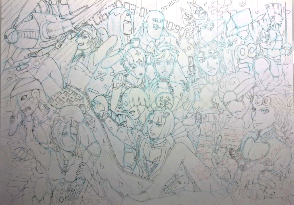 前回載せてたジョジョ5部絵、年またぎましたが完成しました~