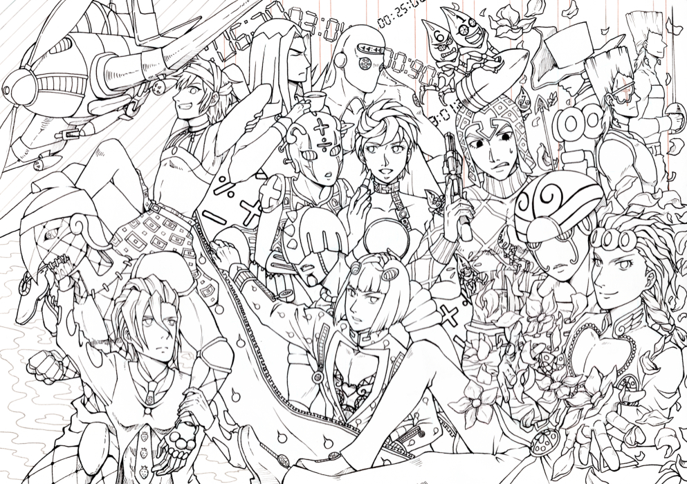 主人公チームとそのスタンド達で集めてみるッ!と描いてたら人数多くなってしまった…w