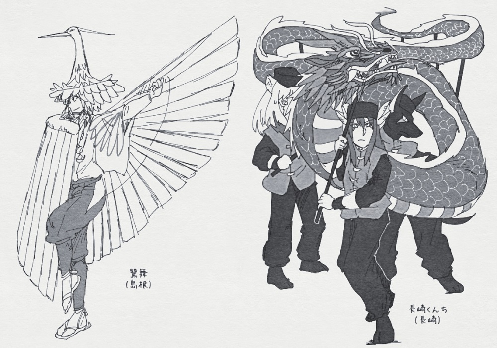 長崎くんちもザ・中華!な感じで。ここで描いてる龍(じゃ)踊りが有名ですかね~