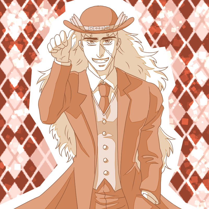 ジョジョ2部「戦闘潮流」の主人公です。敵内部に潜入するための、まさかの女装姿(笑)