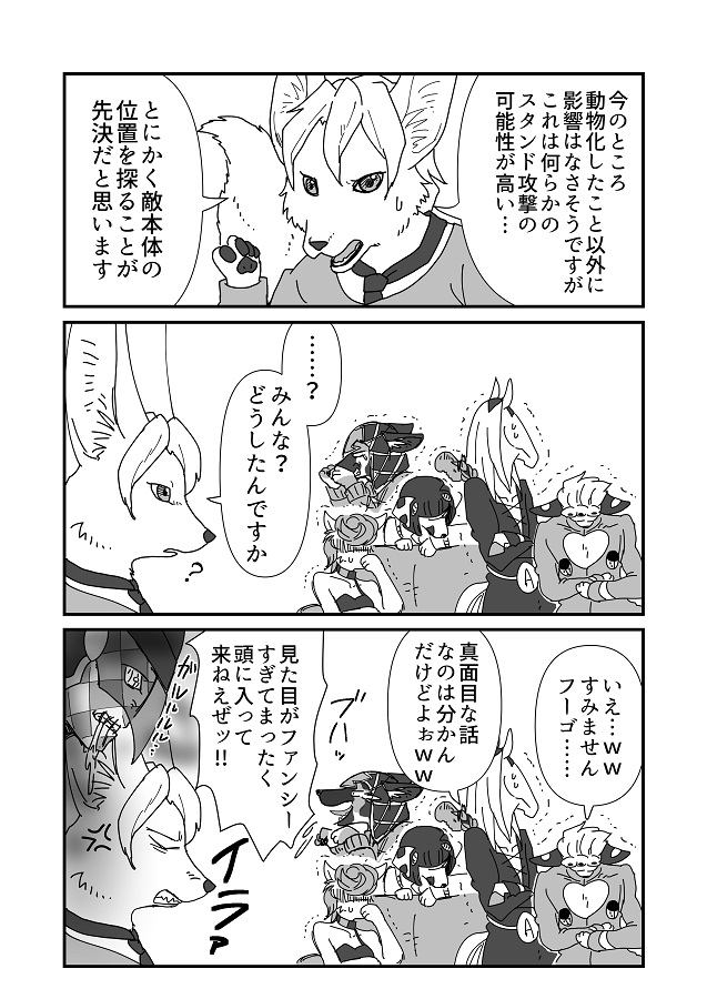 ブチャラティやフーゴはイヌ科っぽい。ジョルノとトリッシュはネコ科っぽい。
